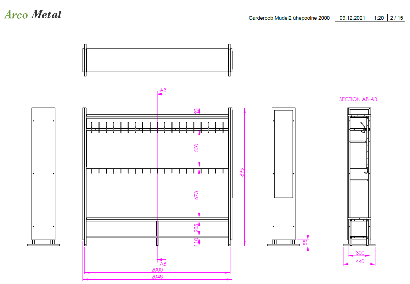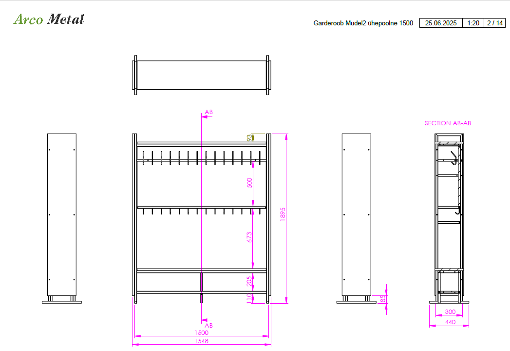 Garderoob Mudel2 ühepoolne, toodetud Arcos.