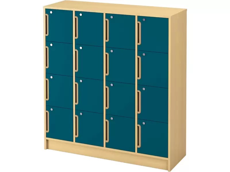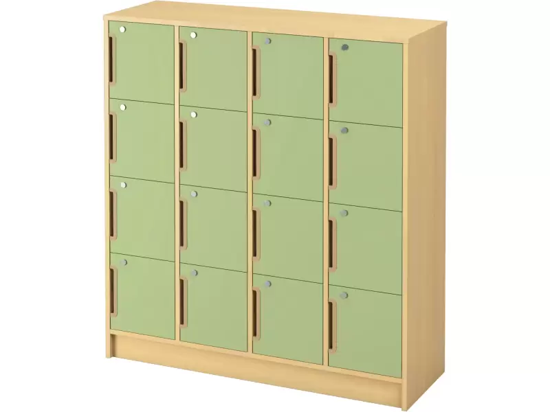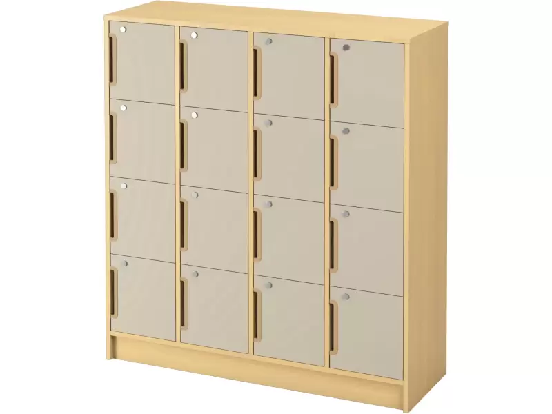 Garderoobikapp uste ja lukuga on õige valik ruumidesse, kus hoiustatavate esemete organiseeritus ja turvalisus on olulised. Kapp on valmistatud vastupidavast 18 mm paksusest kasevärvi lamineeritud puitlaastplaadist, mis tagab tugevuse ja vastupidavuse igapäevasele kasutamisele. Riidekapis on 16 riiulit, mis on valmistatud 18 mm paksusest kasevärvi puitlaastplaadist, mis võimaldab ruumi tõhusalt eraldada ja organiseerida. Lisaks on igal kapil uks, millel on 18 mm paksusest lamineeritud puitlaastplaadist lukk. Ustel on ergonoomiline beež plastkäepide mugavaks avamiseks ja sulgemiseks.