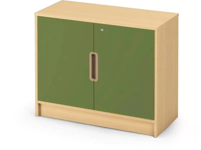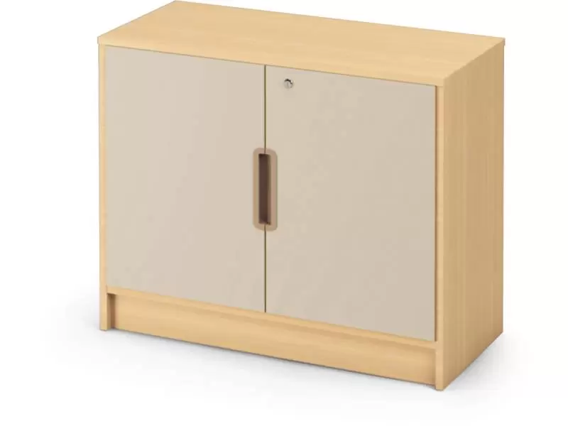 Riiulite ja lukuga ustega kapp pakub praktilist ja funktsionaalset hoiuruumi. Kapp on valmistatud kvaliteetsest 18 mm paksusest kasevärvi lamineeritud puitlaastplaadist. Vastupidav tagasein on valmistatud 5 mm paksusest HDF-plaadist. Lihtsaks avamiseks ja sulgemiseks on ustel ergonoomiline beež plastkäepide.