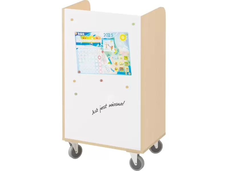Mobiilne kapp töötasapinna ja magnettahvliga pakub praktilist lahendust hariduslikele või loomingulistele ruumidele. Varustatud tugevate ratastega hõlpsaks liigutamiseks. Kapil on peal avar töötasapind, mis sobib ideaalselt kirjutamiseks või töötamiseks. Kapil on avarad avatud riiulid ja suletud sahtel kolme sisemise riiuliga. Kapi tagaküljel on magnettahvel, mis võimaldab kasutajatel magnetitega märkmeid kinnitada või kuivkustutatavate markeritega teavet kirjutada. Lisaks on kaasas praktilised konteinerid tarvikute hoidmiseks.