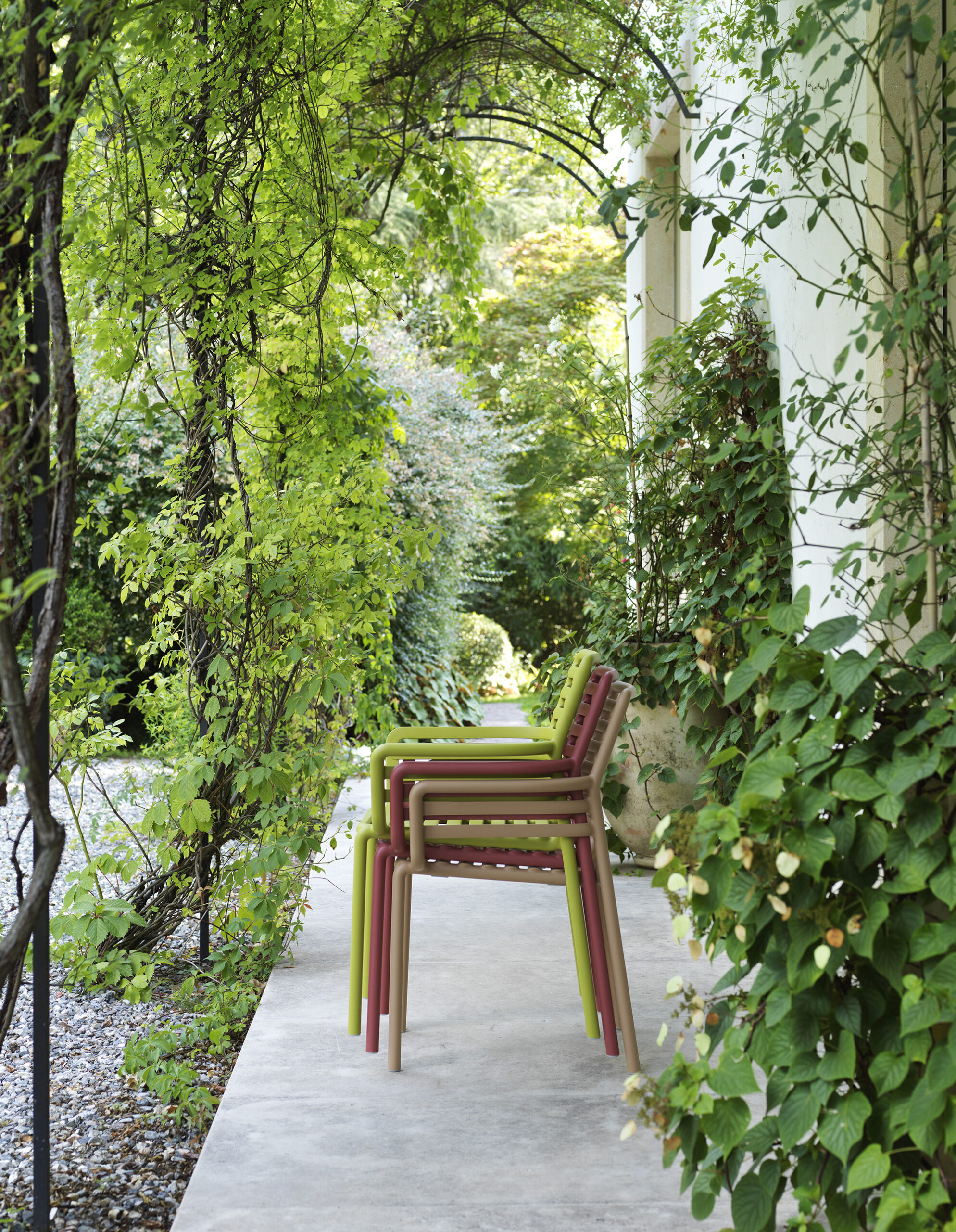 Käetugedega tool Doga. Virnastatav. Monoliitne konstruktsioon – valmistatud ühest tükist, tagades stabiilsuse ja tugevuse. Valmistatud UV-kindlate lisanditega klaaskiuga tugevdatud polüpropüleenvaigust. Matt viimistlus ja libisemiskindlad jalad. Valmistatud taaskasutatavast vaigust. Toode kuulub Itaalia kvaliteetbrändi Nardi valikusse, mis on tuntud oma vastupidava ja stiilse õuemööbli poolest.