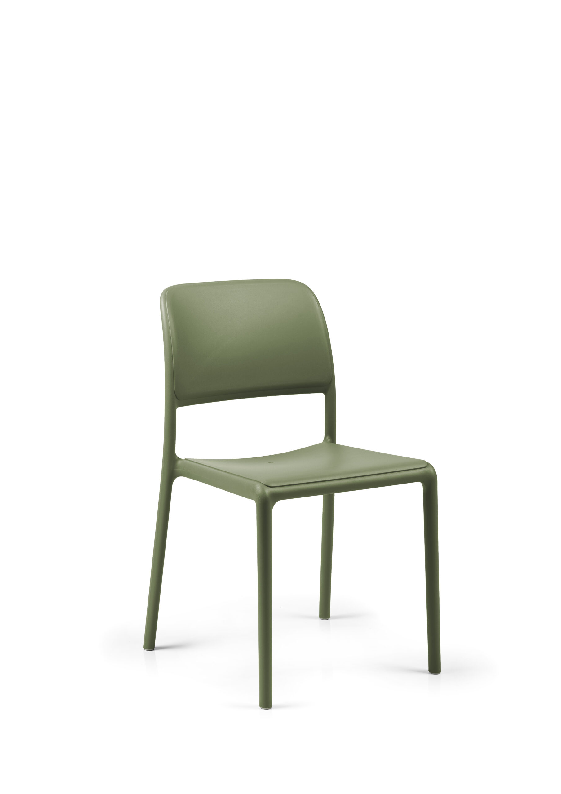 Käetugedeta tool Riva Bistrot. Kerge ja virnastatav. Monoliitne konstruktsioon – valmistatud ühest tükist, tagades stabiilsuse ja tugevuse. Valmistatud UV-kindlate lisanditega klaaskiuga tugevdatud polüpropüleenvaigust. Matt viimistlus ja libisemiskindlad jalad. Valmistatud taaskasutatavast vaigust. Toode kuulub Itaalia kvaliteetbrändi Nardi valikusse, mis on tuntud oma vastupidava ja stiilse õuemööbli poolest.