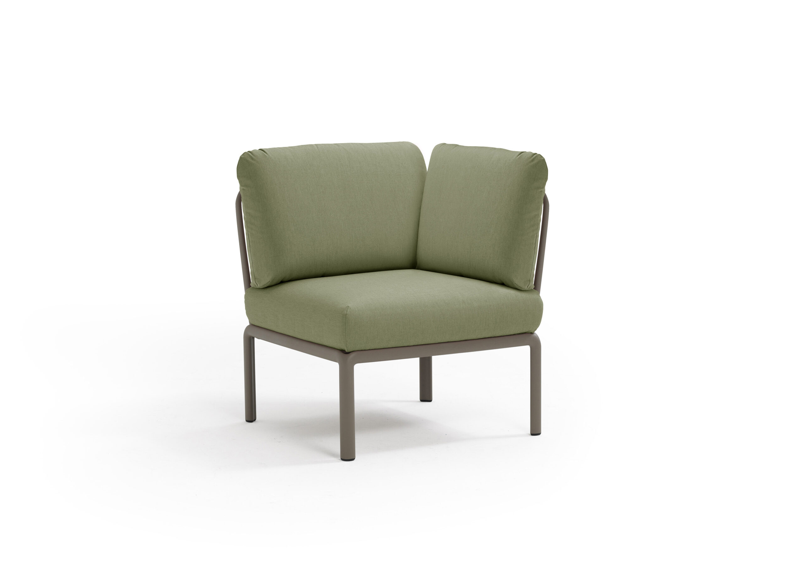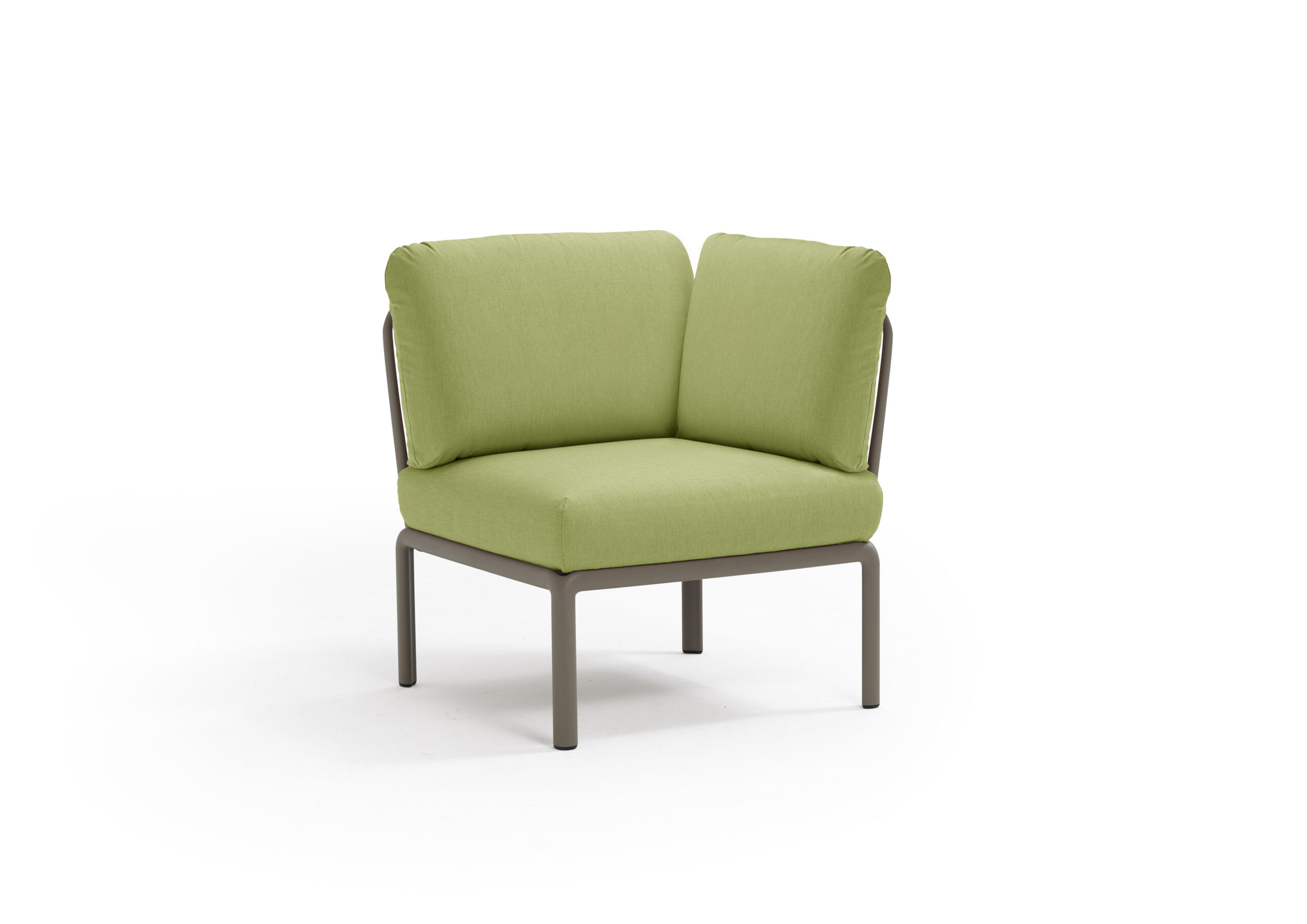 Käetugedeta nurgatool Komodo Elemento Angolo. Sobib nii eraldi tugitoolina kui ka osana Komodo mooduldiivanist. Padjakatted on eemaldatavad tõmblukuga lihtsaks hoolduseks. Raam valmistatud UV-kindlate lisanditega klaaskiuga tugevdatud polüpropüleenvaigust. Regenereeritud kanga värvus (giungla) võib taaskasutatud materjali kasutamise tõttu erineda. Toode kuulub Itaalia kvaliteetbrändi Nardi valikusse, mis on tuntud oma vastupidava ja stiilse õuemööbli poolest.