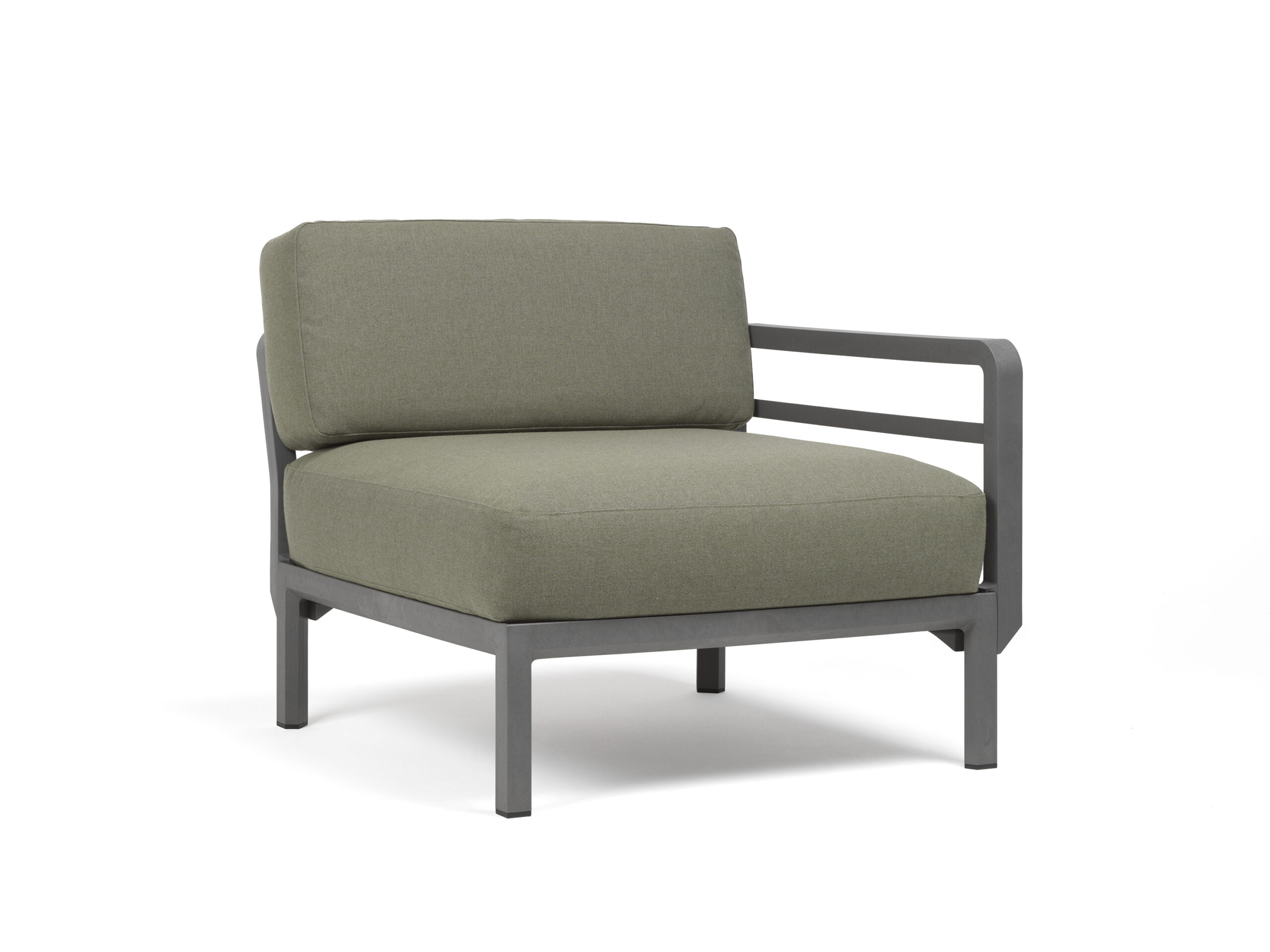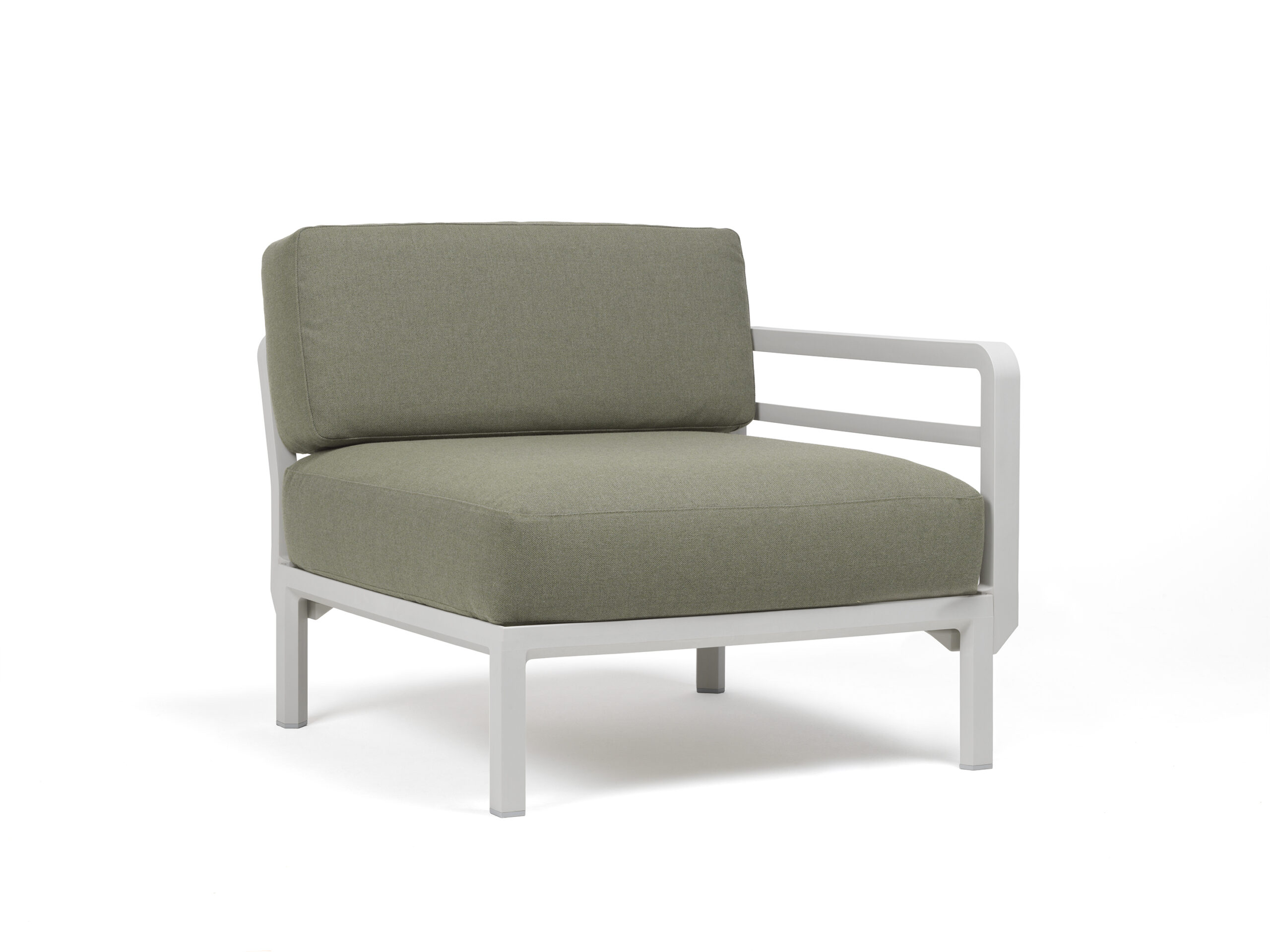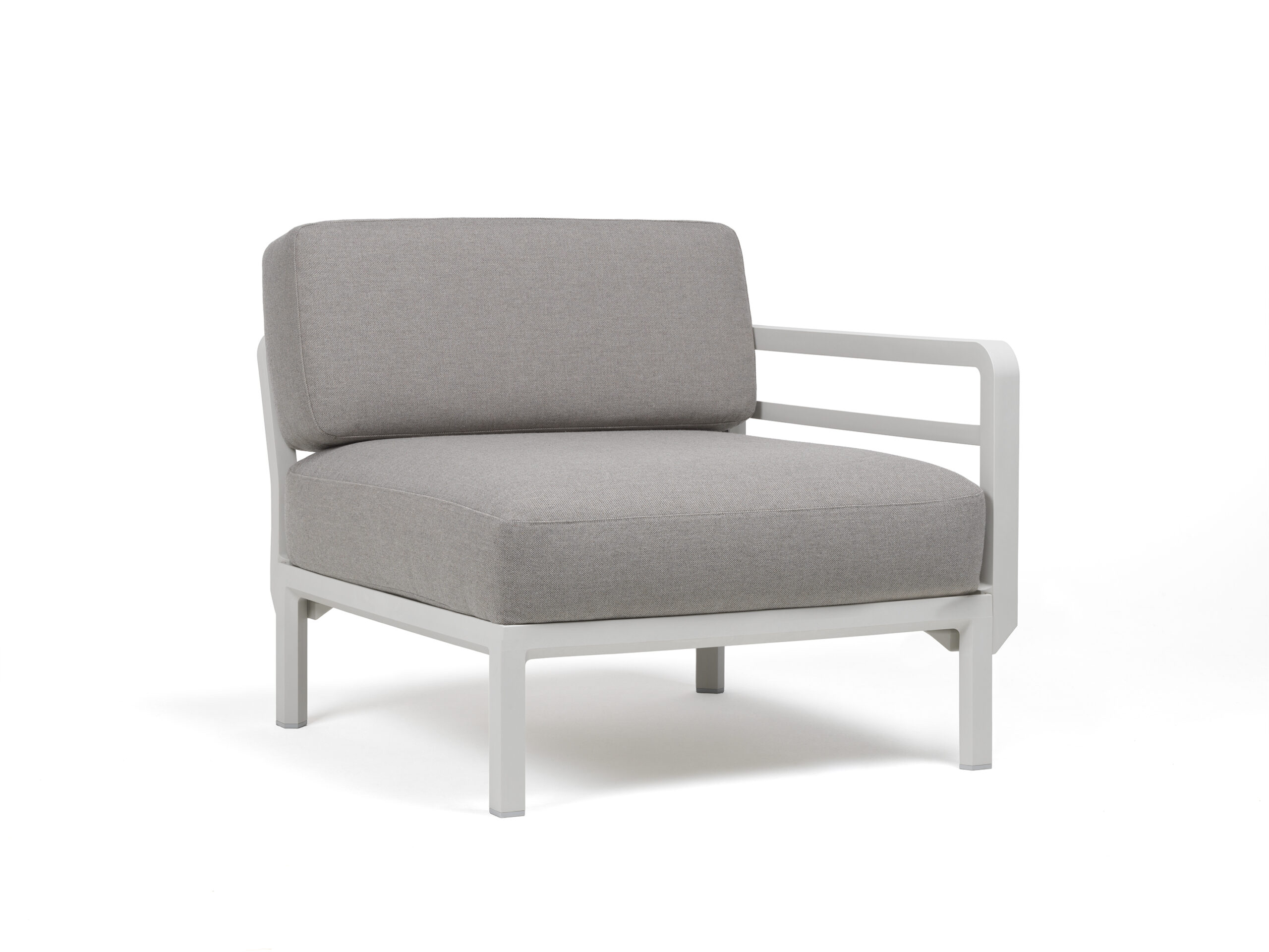 Tugitool Maximo Elemento Terminale. Ühe käetoega. Sobib nii eraldi kui ka osana Maximo mooduldiivanist. Padjakatted on eemaldatavad tõmblukuga lihtsaks hoolduseks. Raam valmistatud UV-kindlate lisanditega klaaskiuga tugevdatud polüpropüleenvaigust. Seljatuge ja käetuge saab istme küljest kruvideta kinnitussüsteemiga kinnitada. Valmistatud taaskasutatud materjalist, mistõttu võib esineda värvierinevusi. Toode kuulub Itaalia kvaliteetbrändi Nardi valikusse, mis on tuntud oma vastupidava ja stiilse õuemööbli poolest.
