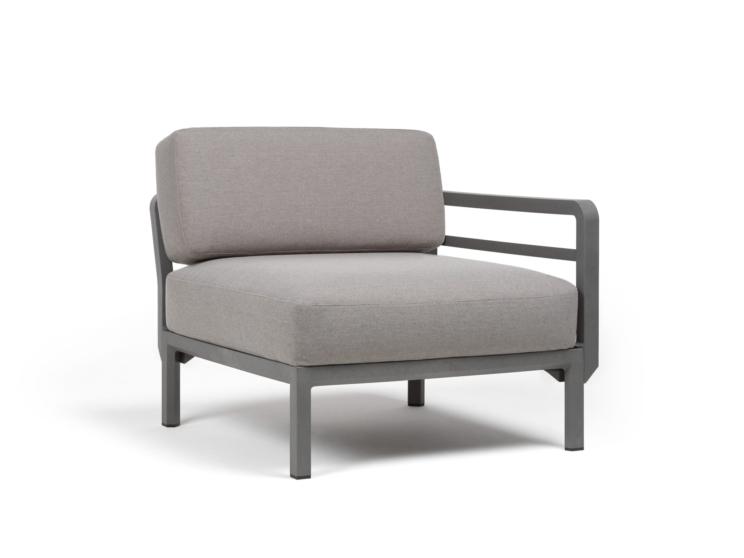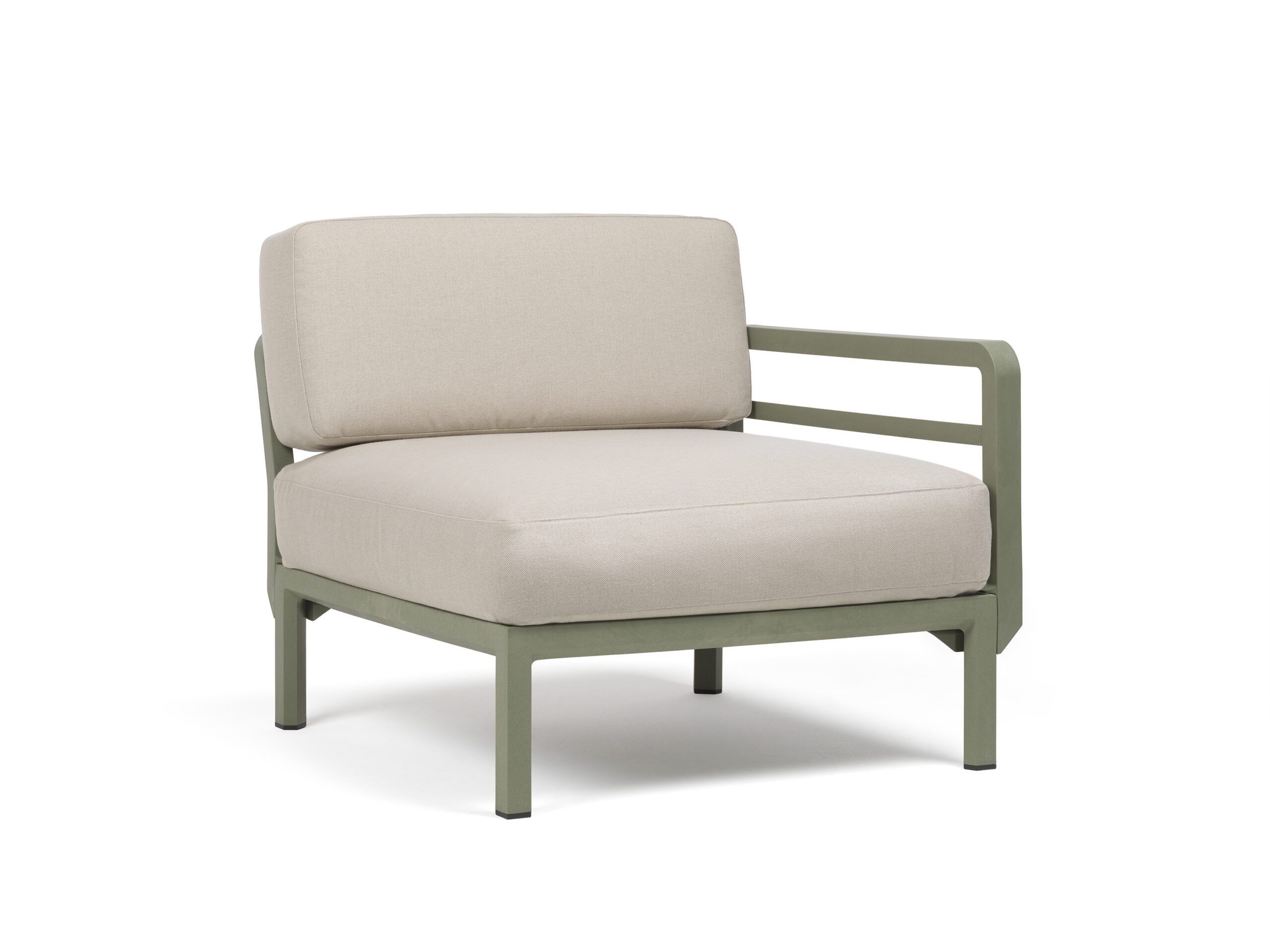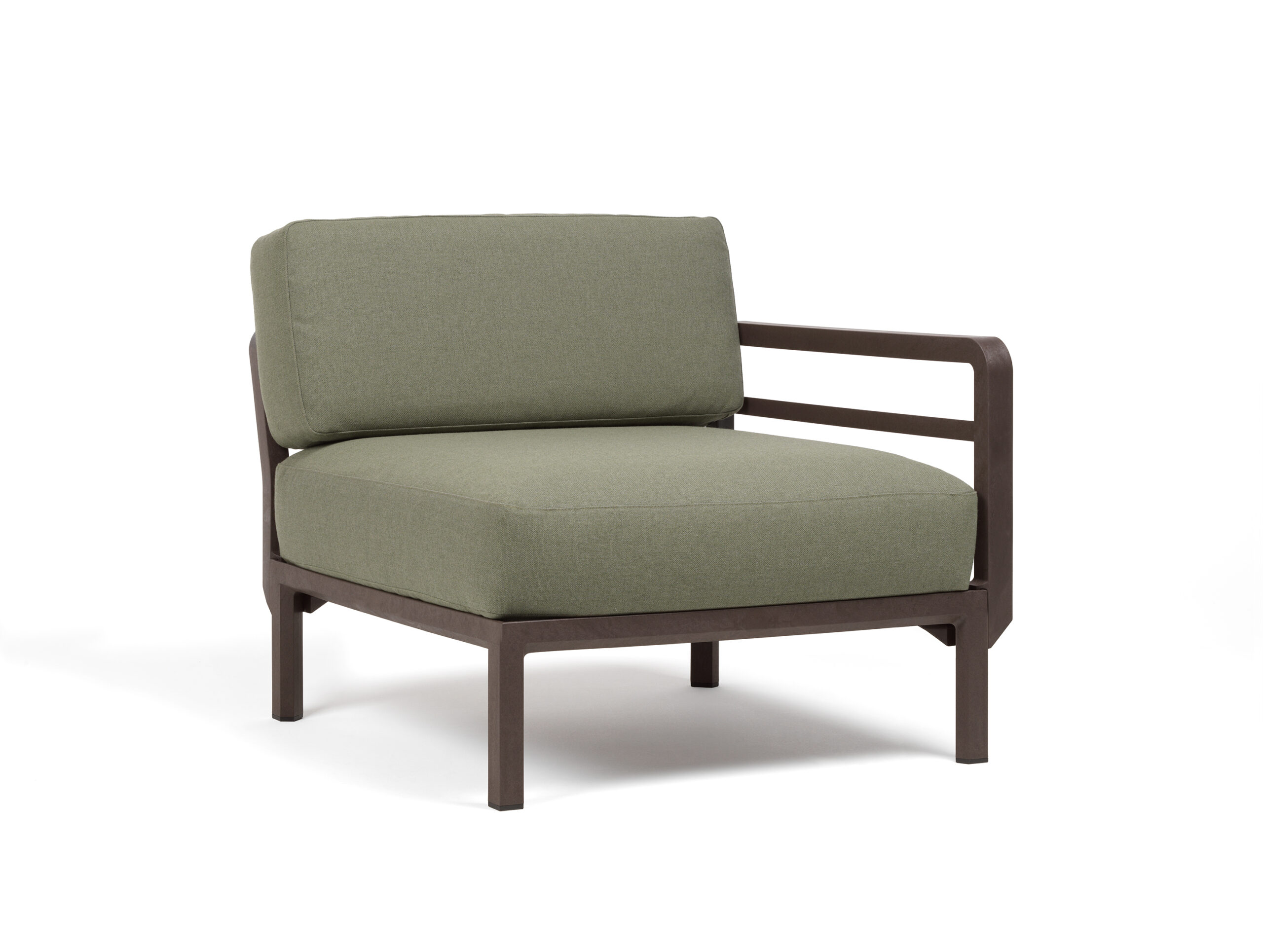 Tugitool Maximo Elemento Terminale. Ühe käetoega. Sobib nii eraldi kui ka osana Maximo mooduldiivanist. Padjakatted on eemaldatavad tõmblukuga lihtsaks hoolduseks. Raam valmistatud UV-kindlate lisanditega klaaskiuga tugevdatud polüpropüleenvaigust. Seljatuge ja käetuge saab istme küljest kruvideta kinnitussüsteemiga kinnitada. Valmistatud taaskasutatud materjalist, mistõttu võib esineda värvierinevusi. Toode kuulub Itaalia kvaliteetbrändi Nardi valikusse, mis on tuntud oma vastupidava ja stiilse õuemööbli poolest.